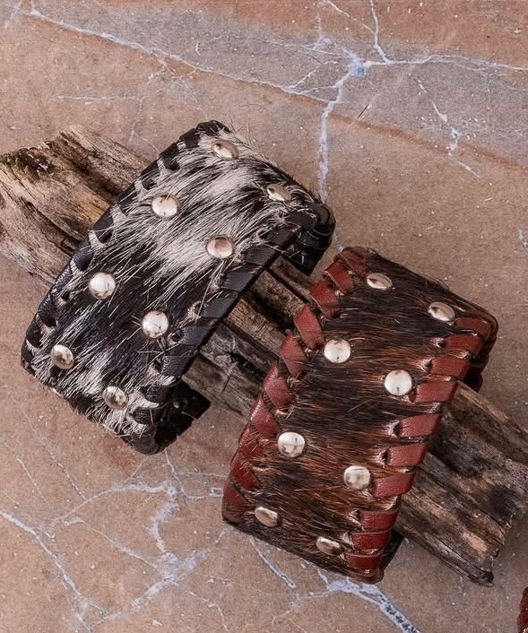 Cowhide Bracelet with Studs