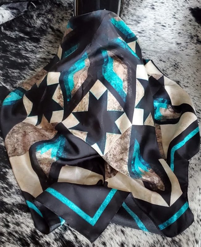 / Grey & Turquoise Southwest Silk Scarf